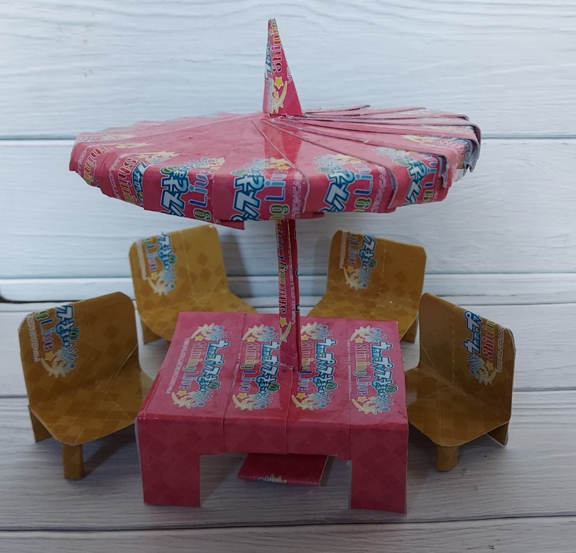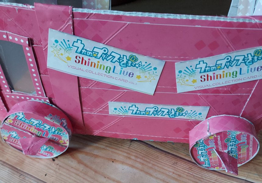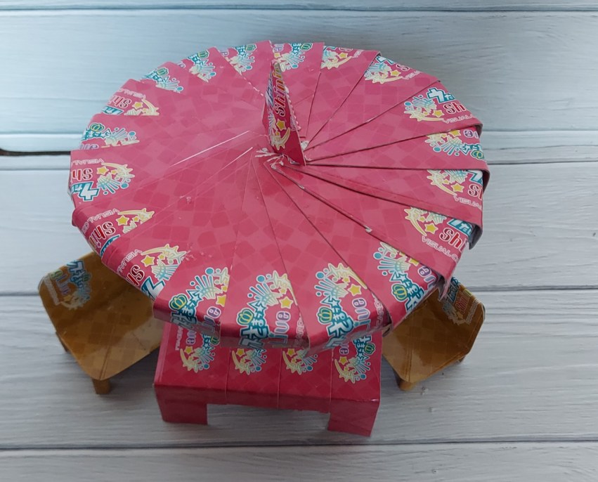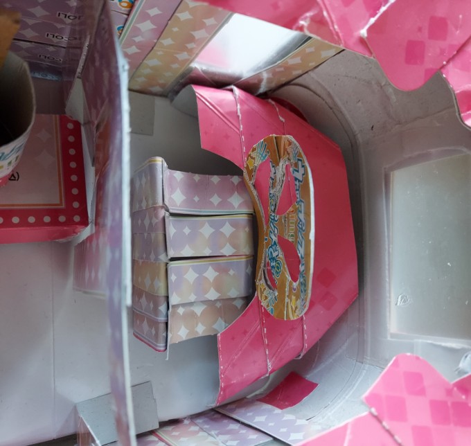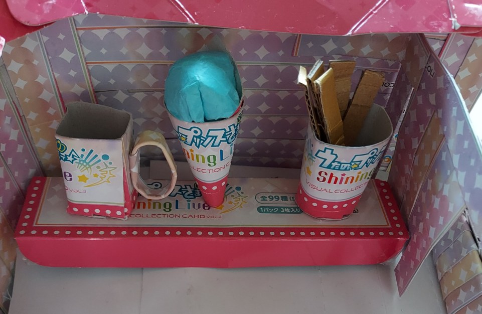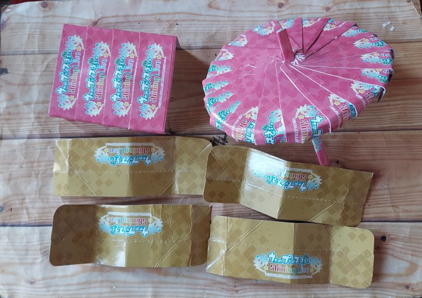 ② パラソルはピンクの箱のロゴで、次にボンドで貼る