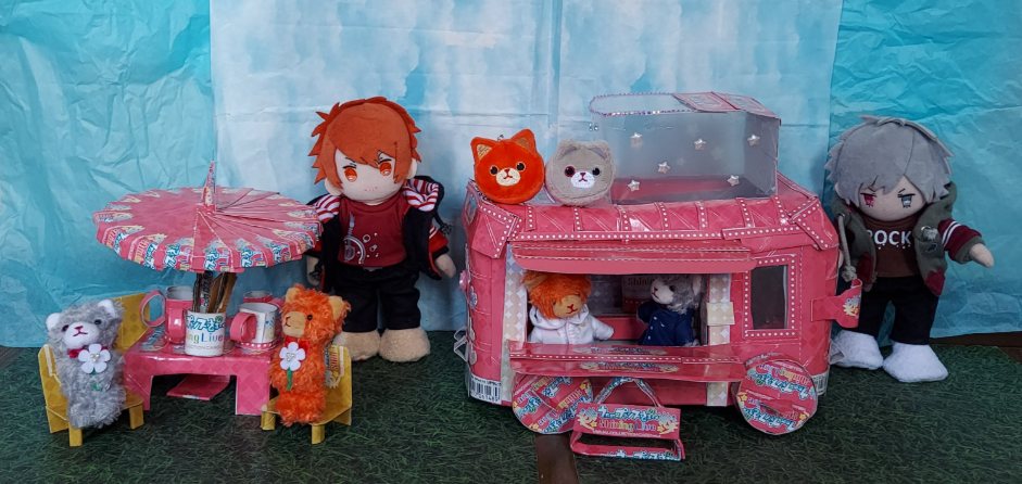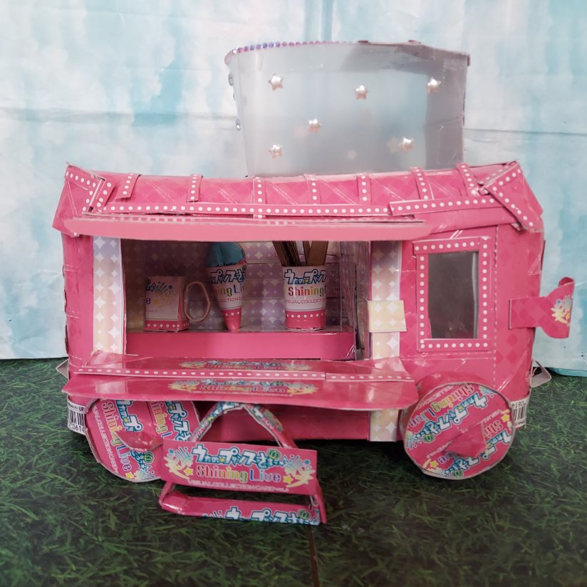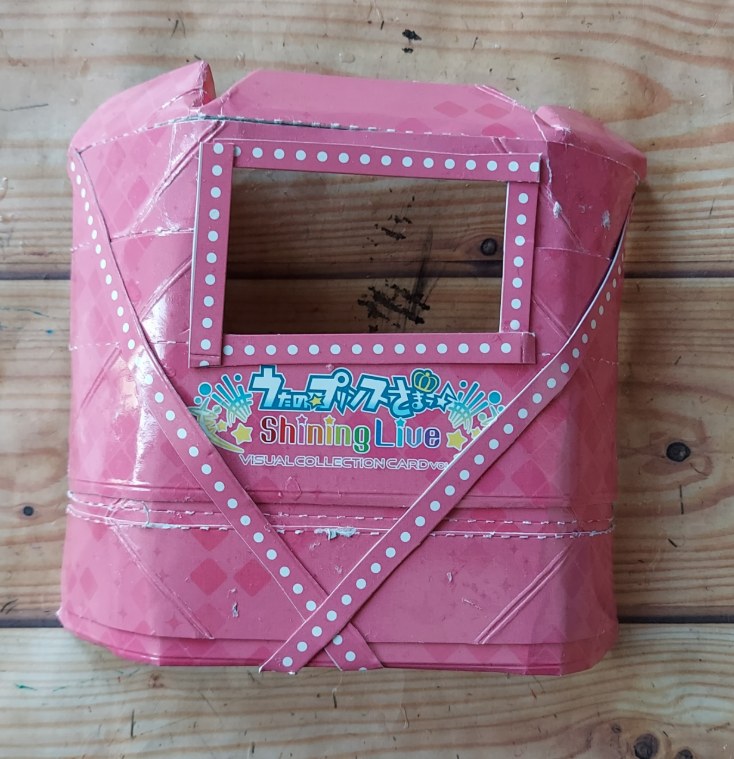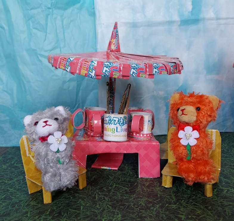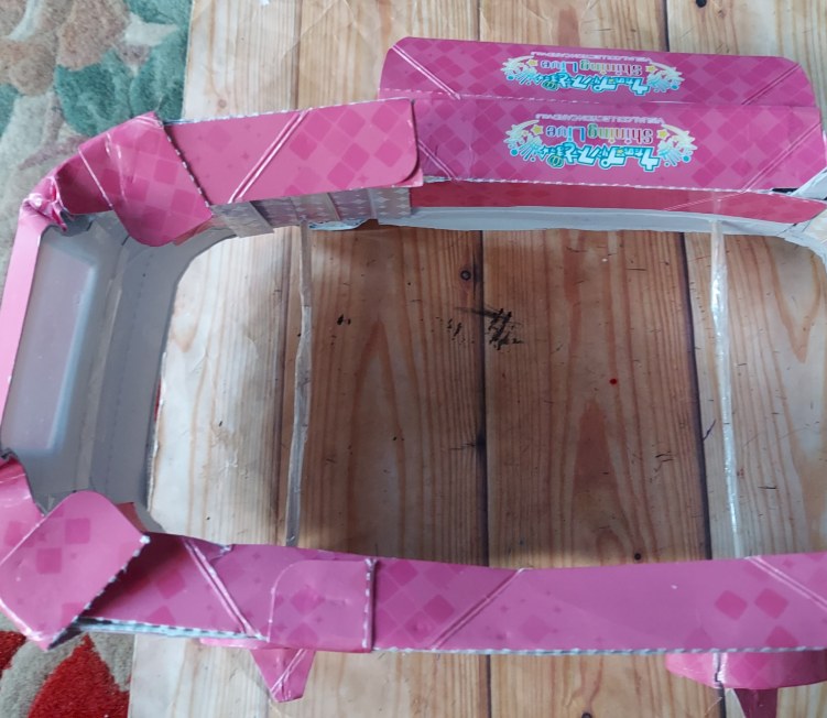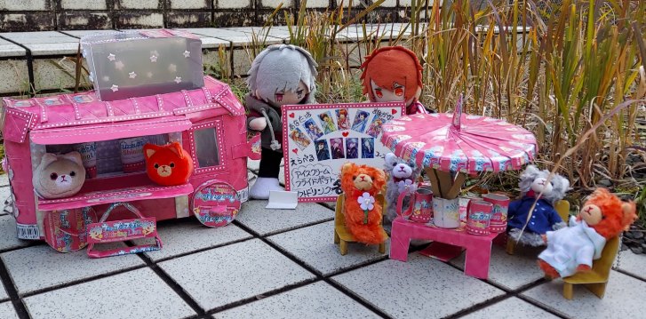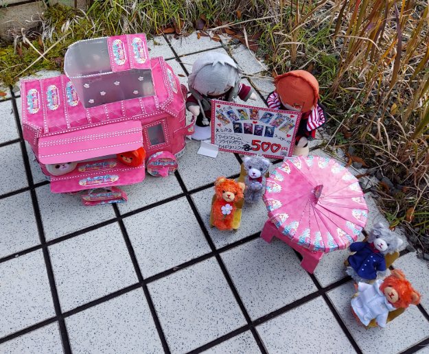 ② パラソルはピンクの箱のロゴで、次にボンドで貼る