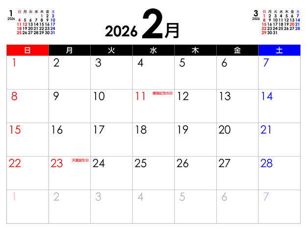 2月は日数が少ないのに祝日が2日もあります