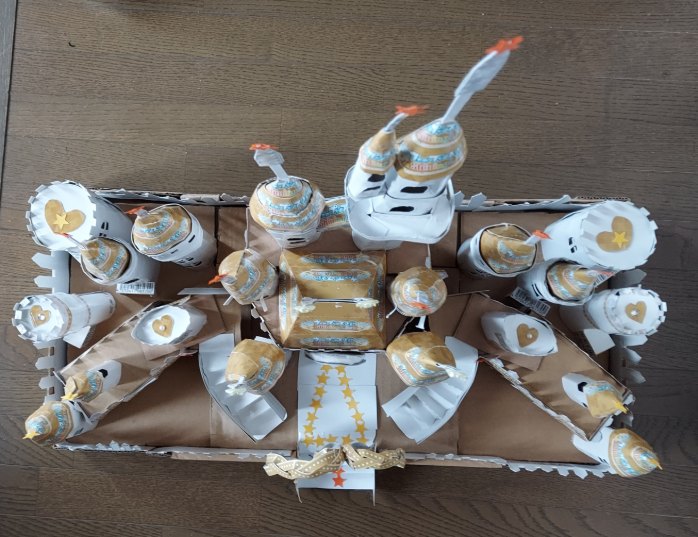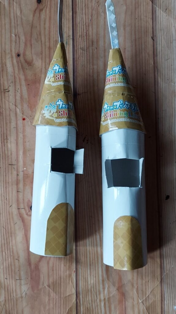 ダンボールと空き箱で、次に左右の階段です