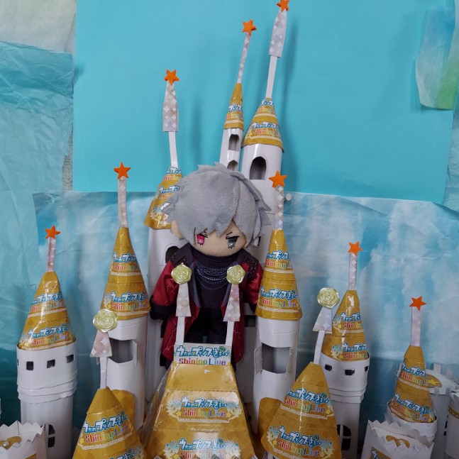 周りをボンドで、次にうた☆プリのロゴで貼る